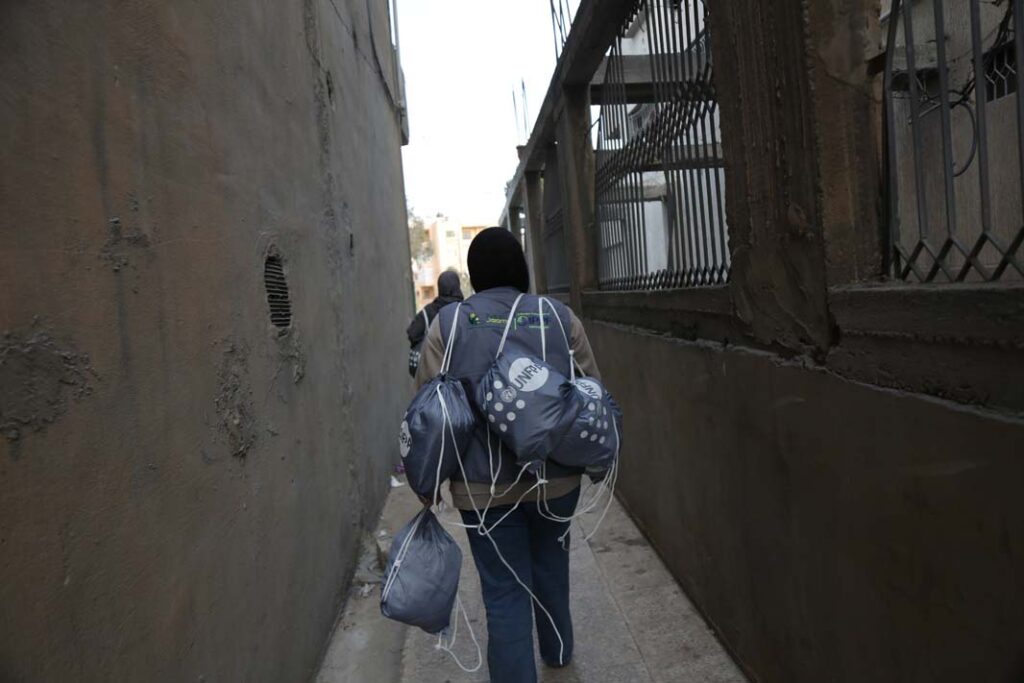 As part of its emergency response, SALAMA with support from UNFPA is conducting awareness sessions and distributing dignity kits to displaced women and girls, ensuring access to essential items to respond to the growing needs of displaced communities in the Bekaa. Together, these efforts aim to support women and families facing crisis with care, protection, and essential services.